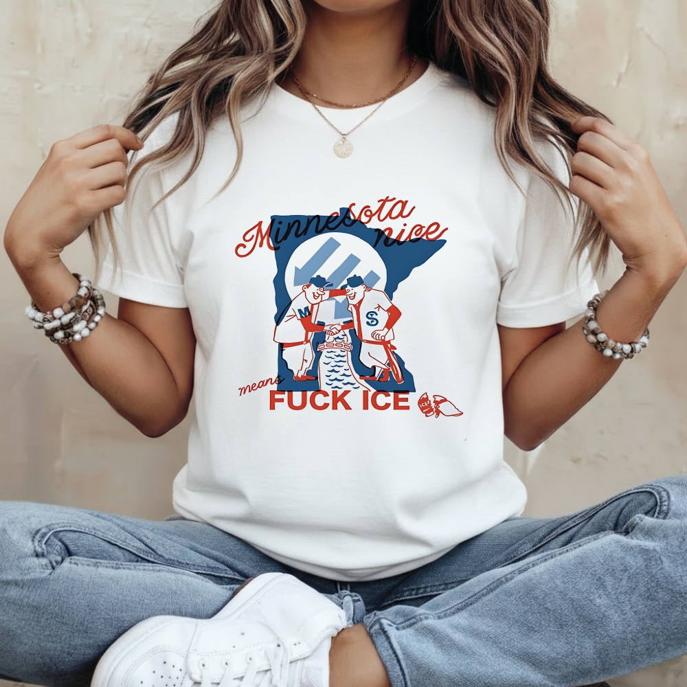 Minnesota nice means fuck ICE baseball cartoon T-shirt