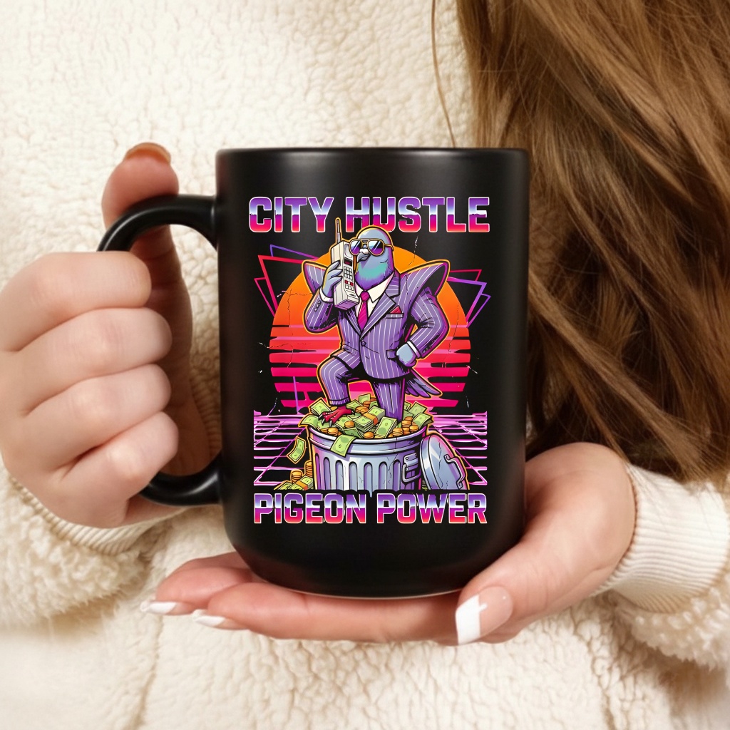 The pigeon symbolizes city hustle, adaptability, and street smarts, turning an everyday urban bird into a playful icon of persistence and confidence.