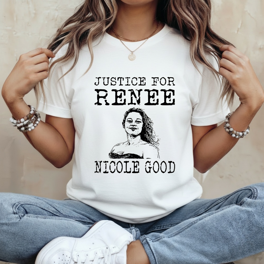 The Justice for Renee Nicole Good Portrait Sketch T-Shirt was created as a tribute-driven design meant to amplify awareness, remembrance, and the call for justice. At the center of the shirt is a thoughtfully rendered portrait sketch of Renee Nicole Good, designed with a clean, illustrative style that conveys dignity and seriousness rather than sensationalism. Paired with advocacy-focused text, the design communicates a message of support, remembrance, and accountability.
