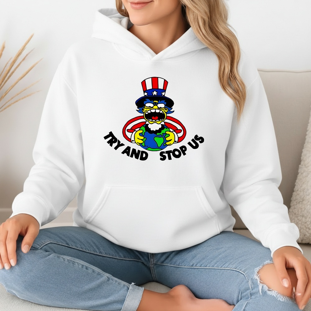 Designed with a unisex fit, the Try and Stop Us Cartoon Logo T-Shirt offers a relaxed silhouette that works for all body types. It pairs effortlessly with jeans, joggers, hoodies, or layered streetwear looks, making it versatile for a variety of casual outfits. This tee is perfect for fans of bold graphics, youth culture, and playful rebellion who want to wear a piece that’s both fun and empowering.